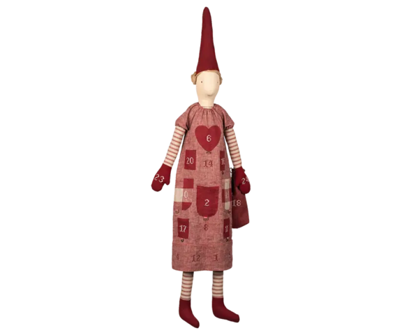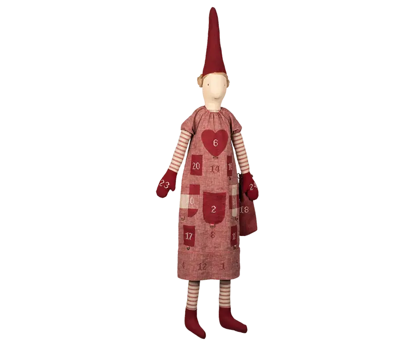 December is full of family traditions, and this calendar elf could be your next one. The calendar elf has 24 rings/pockets to attach small gifts to - one for each day before Christmas. The elf has a loop around the neck, so it's easy to hang anywhere.