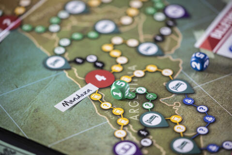 Vil din taktik være at rejse hurtigt og bruge mere tid på at arbejde, for at betale for billetterne? Eller spille langsomt og stabilt, for at få dine penge til at holde, og ikke blive bremset af et jobstop? Valget er dit! Hver spiller vælger deres rejsefælle fra bunken af rejsepas. Men pas på!