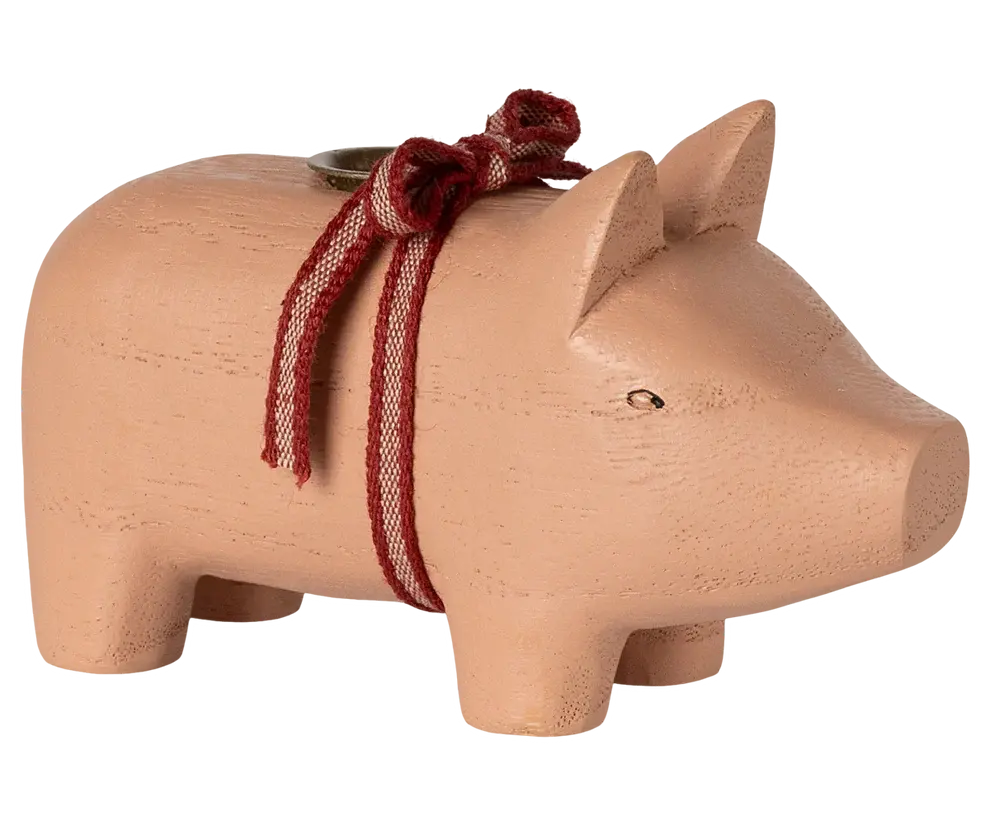 Maileg - Trælysestage, Gris - Lille - Rosa - 2025